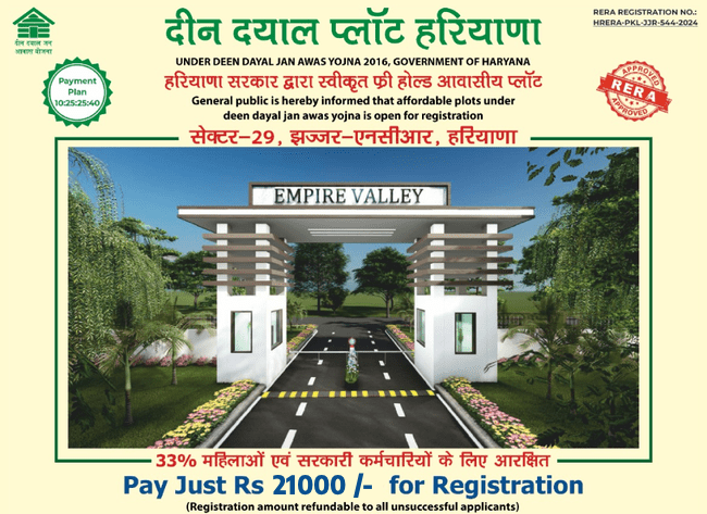 Looking for affordable residential plots in Jhajjar, Haryana? Empire Valley brings you government-approved DDJAY plots in Sector 29, Jhajjar, offering you the perfect blend of affordability, connectivity, and modern infrastructure.